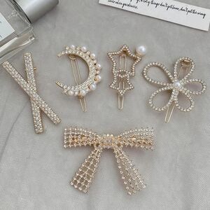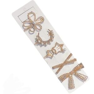 Rhinestone Inlaid Hair Barrette Set, Flower, Star, Bow & More.