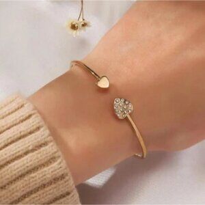 Elegant gold bracelet featuring a sparkling rhinestone heart. Perfect for adding a touch of glamour to any outfit.