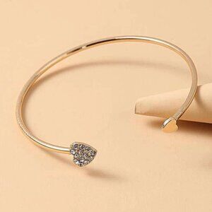 Rhinestone Heart Cuff Bangle Bracelet