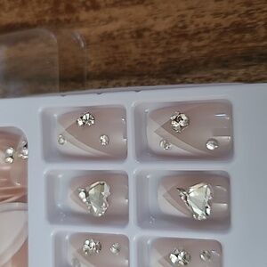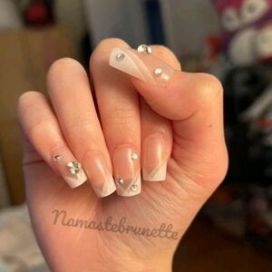 Medium Length Nails | Rhinestone French Manicure Pattern Nails | Square Nails | Fake Nails | False Nails | Press Ons | Vintage | Retro | Wedding