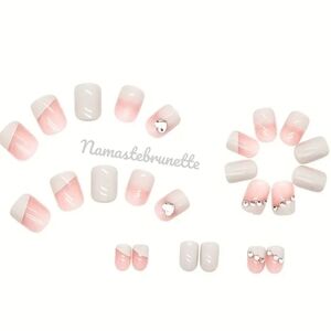 Short Nails | Rhinestone French Manicure Pattern Nails | Square Nails | Fake Nails | False Nails | Press Ons | Vintage | Retro | Wedding