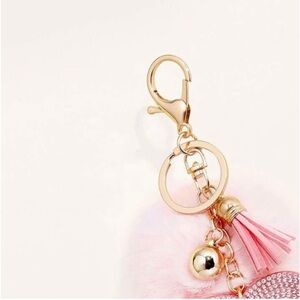 Rhinestone Heart Pom Pom Charm Keychain