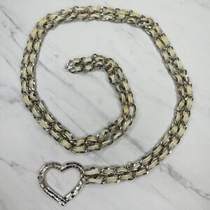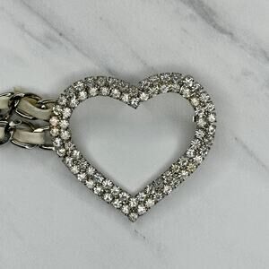 Rhinestone Heart Silver Chain Link Belt Y2K Festival One Size (OS) ✨