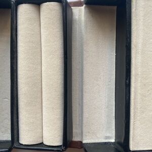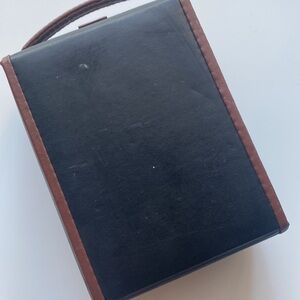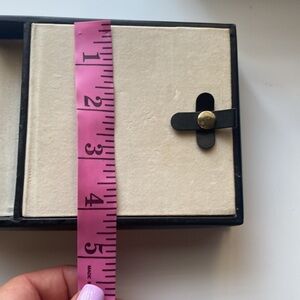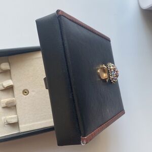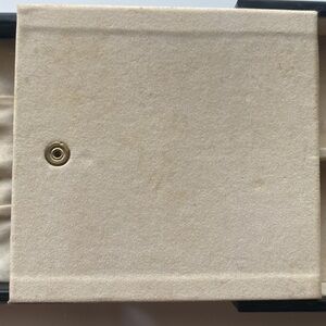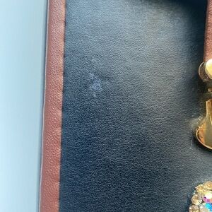 Condition: used, with some flaws. There is some white areas on back, side, and front. As well as inside, there are some yellowing, and black spot area but this is really pretty travel jewelry case and the closure works great.