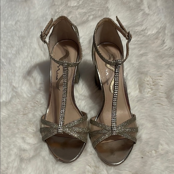 Elegant glitter/rhinestone heels with ankle strap. Perfect for special occasions.