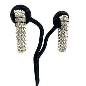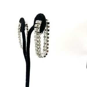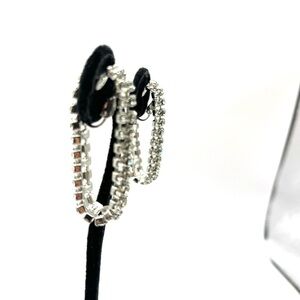Rhinestone Hoop Earrings Linked 2” 3 Row Evening Elegant Earrings Vintage