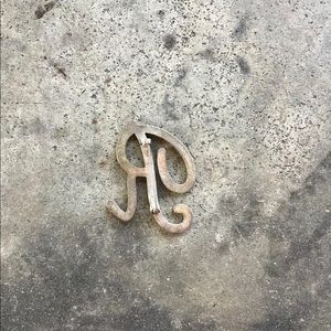 Crystal rhinestones set in silver initial “R”. Pin back brooch is 1 3/8” long.