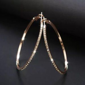 Rhinestone Inlaid Hoop Earrings-Gold Tone