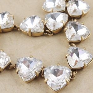 Faceted triangular glass crystals sparkle in this quintessential laying necklace. Transitions beautifully from day to night. Add to several statement necklaces for that touch of sparkle!