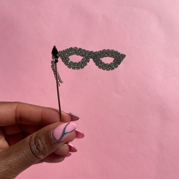 Vintage rhinestone mask pin. Perfect for adding a touch of sparkle.