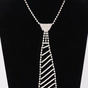 The Rhinestone Necktie Necklace is a bold blend of glam and edge. Inspired by classic necktie silhouettes, this necklace features dazzling rhinestones arranged in a striking pendant. Ideal for formal events or adding statement flair to a simple look, this piece turns heads with its confidence and sparkle.