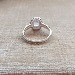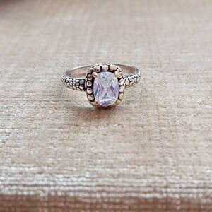 Clear Multi-faceted Rhinestone Four Prong Setting Gold and Silver Pebbled Textured Silver Ring