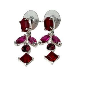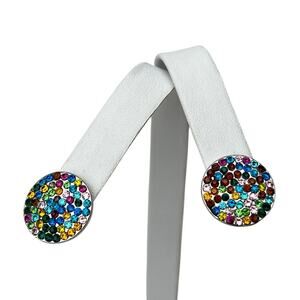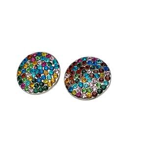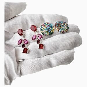 Rhinestone Pierced Earrings Lot 2 Colorful Mosaic Disc Dangle Faceted Red Pink