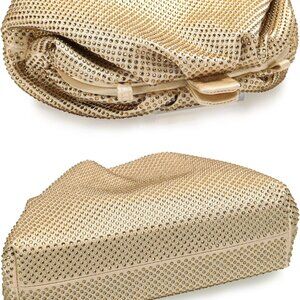 Gold Satin Crystal Clutch — Sparkling elegance for evening and special occasions.
