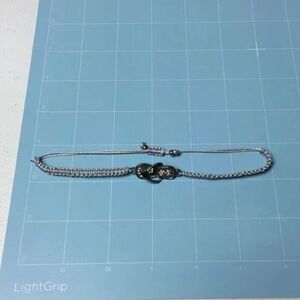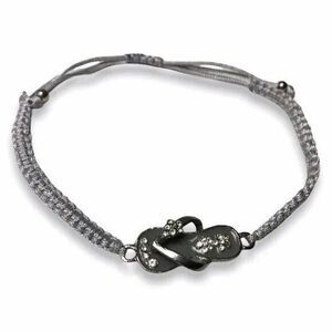 Rhinestone Sandal Bracelet Adjustable Cord Gray Flip Flop Charm Hawaii Souvenir
