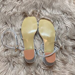 Rhinestone Shimmer Silver Chunky Low Block Heeled Ankle Strap Square Toe Sandals
