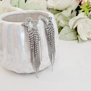 Women's Shooting Stars Rhinestone Long tassel silver elegant Statement evening formal dangle Earrings, new no tags