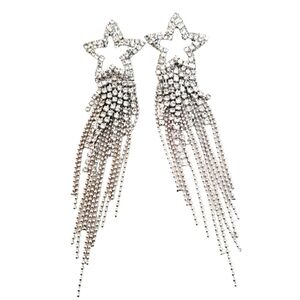 💖 Rhinestone Shooting stars tassel silver Statement formal dangle Earrings new