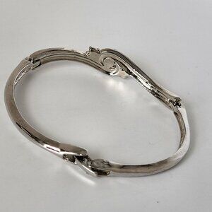 Rhinestone Silver Bracelet Rhodium Plated Bangle Box Clasp 7"