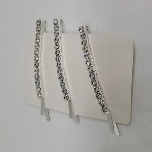 Rhinestone Silver Tone 2.5" Hair Pins Set of 3