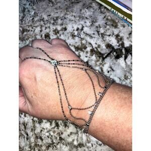 Rhinestone Silver-Tone Chain 9 1/8" Wide & 5.5" Length Hand Chain Link Finger Ring Bracelet!