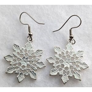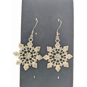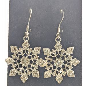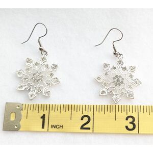 Silver snow flakes enhanced with clear rhinestones. Measurements are approximate: 1 inch