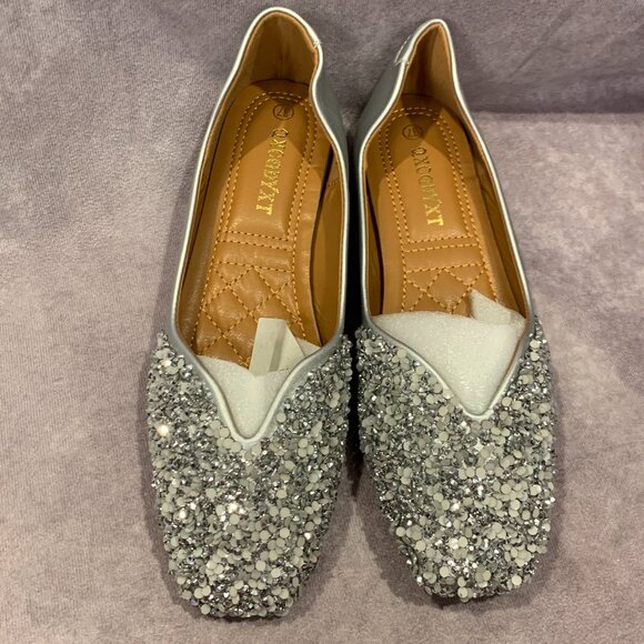 Decorated with rhinestones, Beautiful, elegant and fashionable it's just shiny enough to be eye catching without being too gaudy. You can pair these dress shoes with many kinds of outfits, like jeans, dresses, skirts, silver sparkle rhinestone shoes are also a good choice for wedding, date, evening, prom, dancing