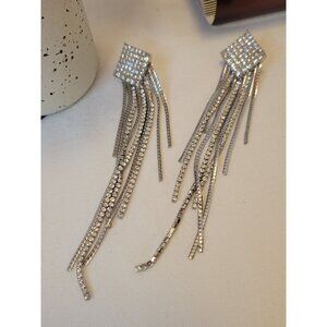 Elegant long dangle earrings adorned with sparkling rhinestones. Ideal for special events or adding a touch of glamour to everyday outfits.