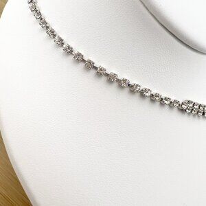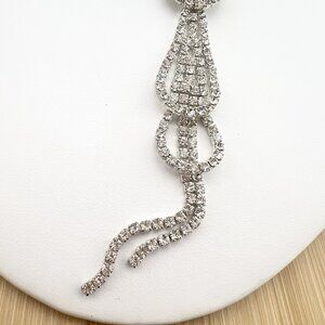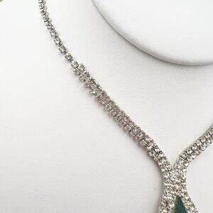 Rhinestone Statement Necklace Green Teardrop Tassel Silver Tone