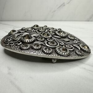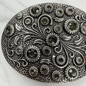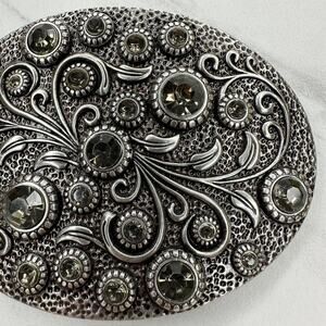 Rhinestone Studded Floral Silver Tone Oval Western Belt Buckle Statement ✨