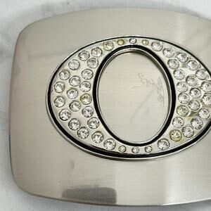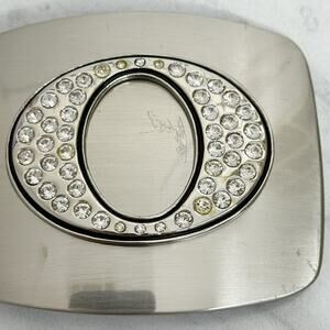 Rhinestone Studded O Letter Initial Monogram Silver Tone Belt Buckle ✨