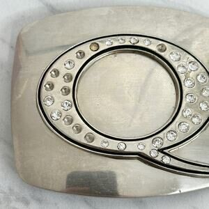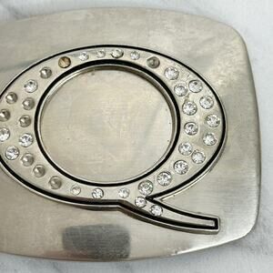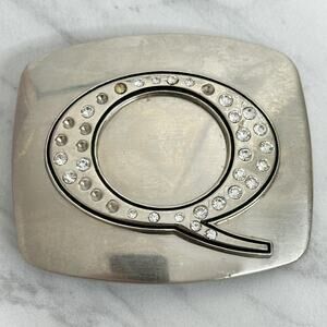 Rhinestone Studded Q Letter Initial Monogram Silver Tone Belt Buckle