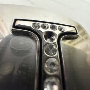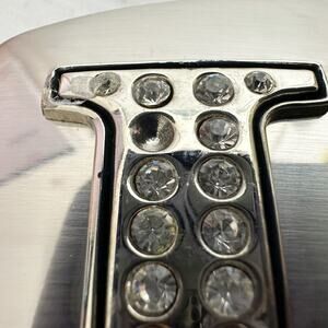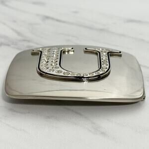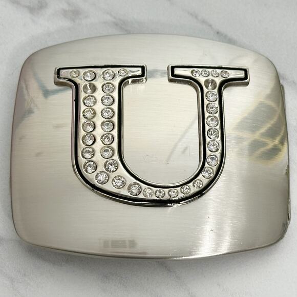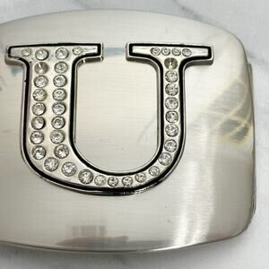 Rhinestone Studded U Letter Initial Monogram Silver Tone Belt Buckle