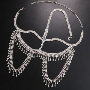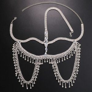 Rhinestone Tassel Masquerade Mask for Women Halloween Mask Veil Face Chain