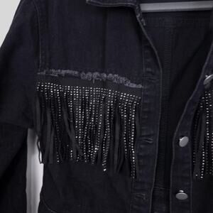 Rhinestone Tassel Raw Hem Long Sleeve Denim Jacket OR Mini Shirt Dress, Medium