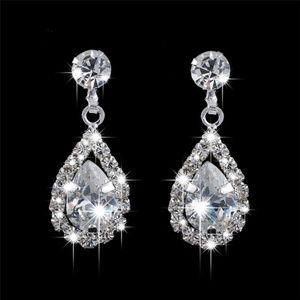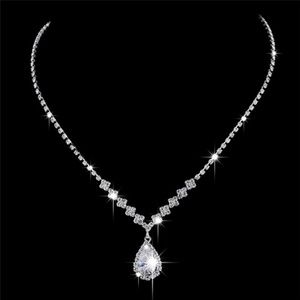 Silver and Rhinestone Teardrop Bridal Necklace and Earring Set