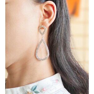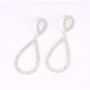 Rhinestone Teardrop Dangle Earrings Sparkly Wedding Bridal Party Jewelry Gift