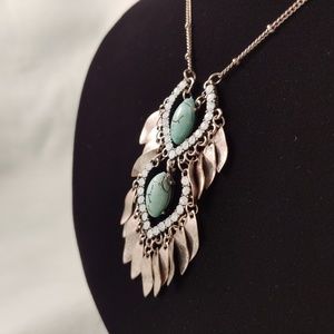Rhinestone Turquoise Silver Tone Chain Necklace 23"-26" Pendant