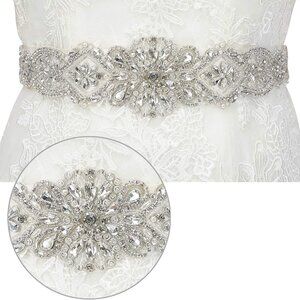 Features: Sparkly rhinestone applique measures 17 inches long and 3 inches wide, beautifully adorned with hundreds of crystals for that perfect bridal shimmer. The satin ribbon belt is a generous 100 inches long, so it ties easily into a big bow at the back, fitting most waist sizes. Perfect for adding a custom, glamorous touch without extra fuss.