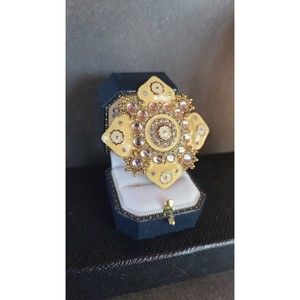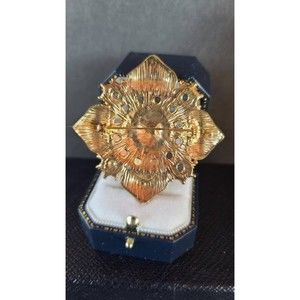 This is a very pretty vintage clear rhinestone and enamel floral brooch.