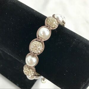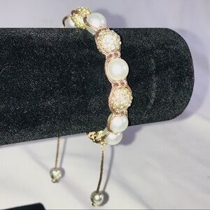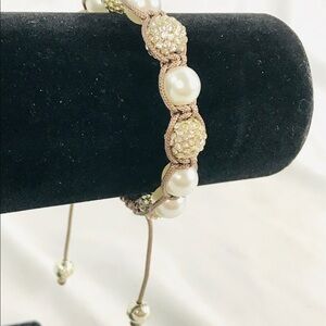 Rhinestone and Pearl Beaded Drawstring Bracelet