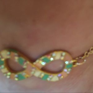Rhinestone and enamel infinity ankle bracelet