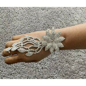 Rhinestone clear hand chain silver bracelet $ ring set bridal bracelet with ring