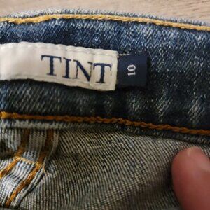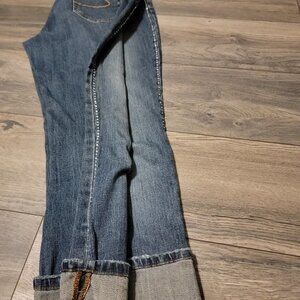 Tint Rhinestone embellished boyfriend cropped cuffed jeans - Size 10 Rhinestones down each leg.