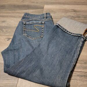 Rhinestone embellished boyfriend cropped cuffed jeans - Size 10