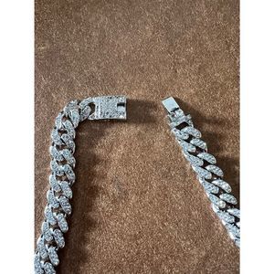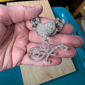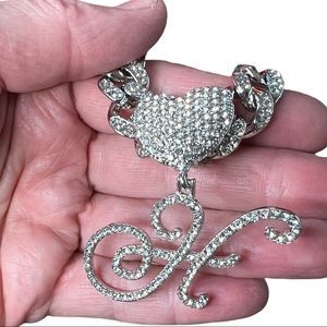 Rhinestone heart initial H pendant on Cuban chain necklace
