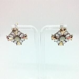 Rhinestone post earrings Diamond shape Gold Clear Pearlescent NWOT