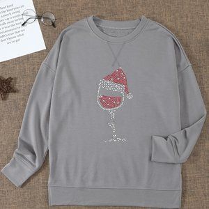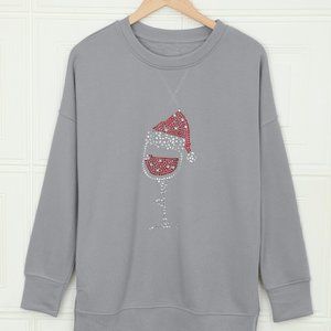 Rhinestone studded embellished Christmas Santa Wine Glass Sweatshirt