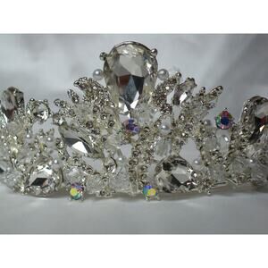 Stunning rhinestone, crystal and pearl tiara crown. These are Austrian crystals and rhinestones. Truly a statement tiara.