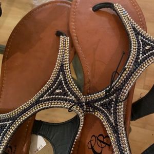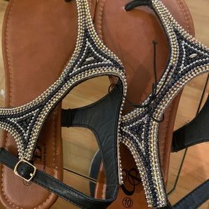 Rhinestone Vcross black and gold sandals